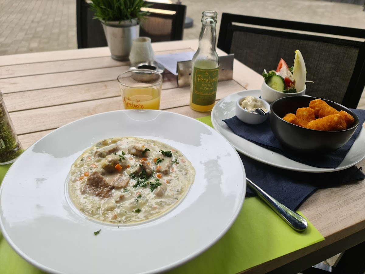 Eetcafé Den Bell also offers a range of other delicious options, such as the Perelaere, a traditional Belgian dish that never fails to impress. If you're in the mood for something a little more indulgent, the Vol Au Vent is a fantastic choice, featuring a rich, creamy filling encased in a delicate puff pastry shell. You can’t go wrong with the Spiegelei either, a simple but satisfying fried egg that is a beloved comfort food.
